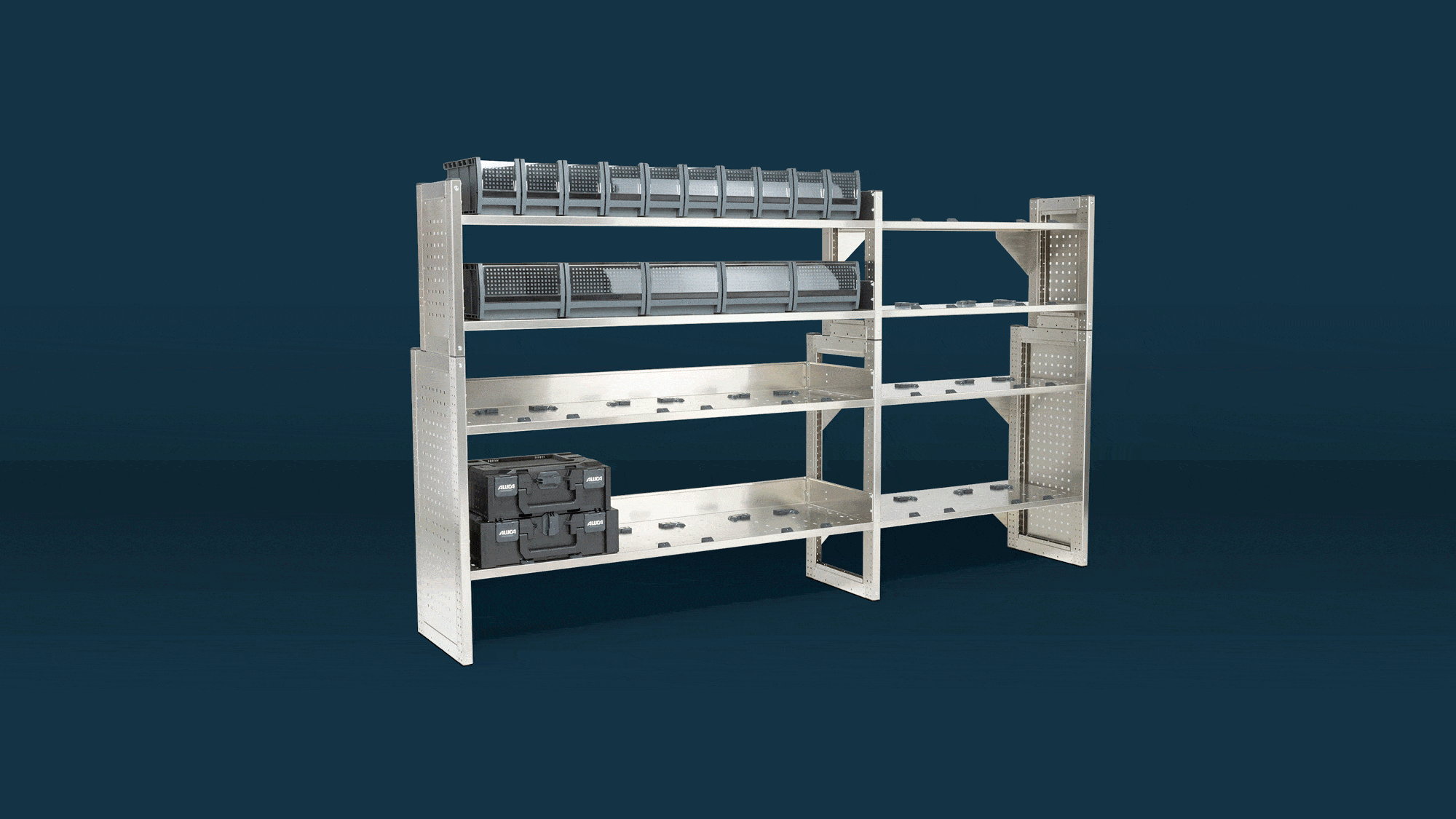 Aluca bedrijfswageninrichting is dé keuze voor professionals die hun werkplek optimaal willen benutten. De kracht van Aluca zit in de modulaire opbouw en de hoogwaardige materialen. Alle systemen zijn gemaakt van aluminium, wat zorgt voor een lichtgewicht en robuuste inrichting die jarenlang meegaat. Een belangrijk voordeel van aluminium is dat het roestbestendig en onderhoudsarm is. Dit betekent dat je jarenlang profiteert van een bedrijfswageninrichting die er als nieuw uitziet en perfect blijft functioneren, ongeacht de omstandigheden waarin je werkt.