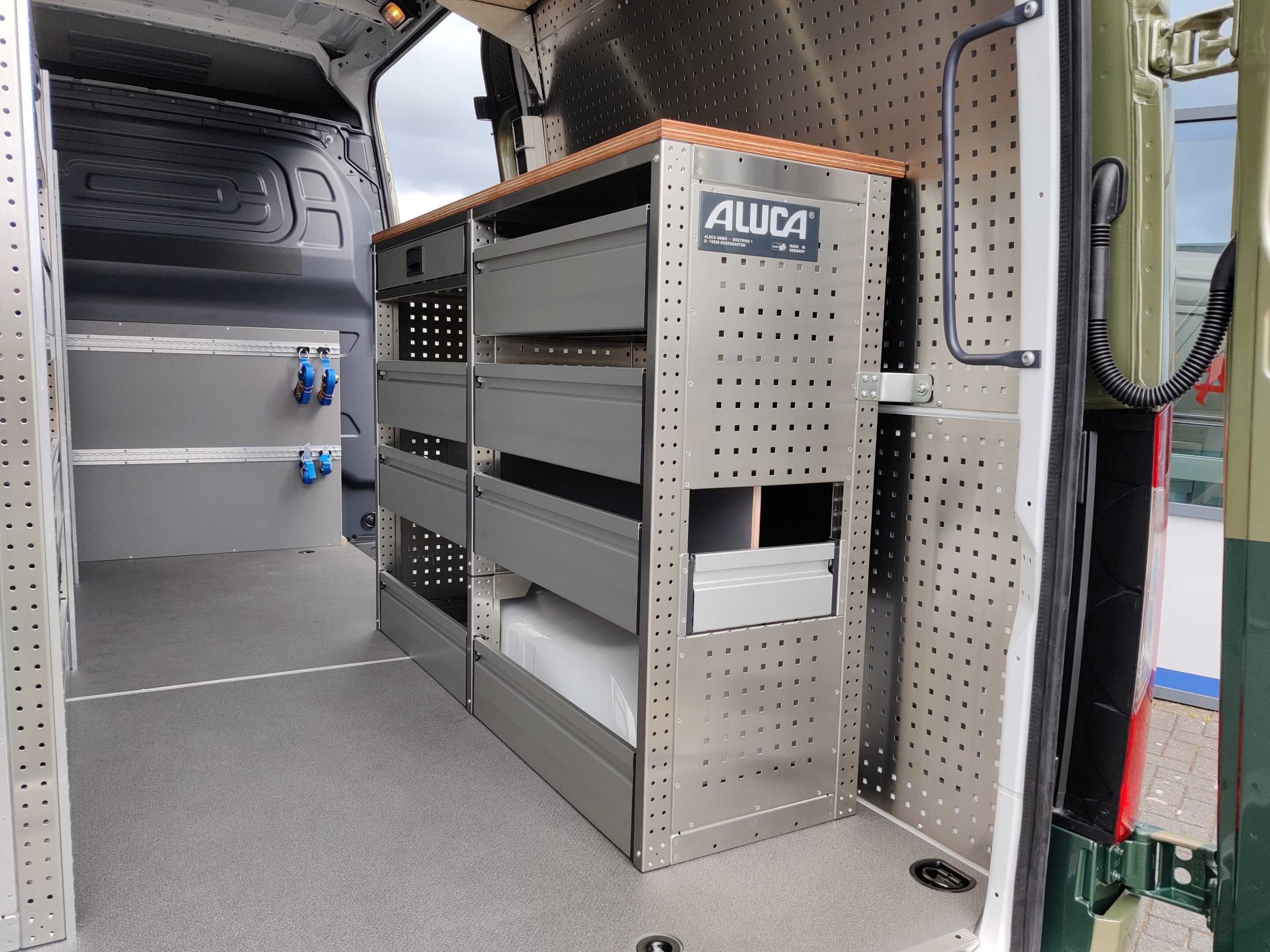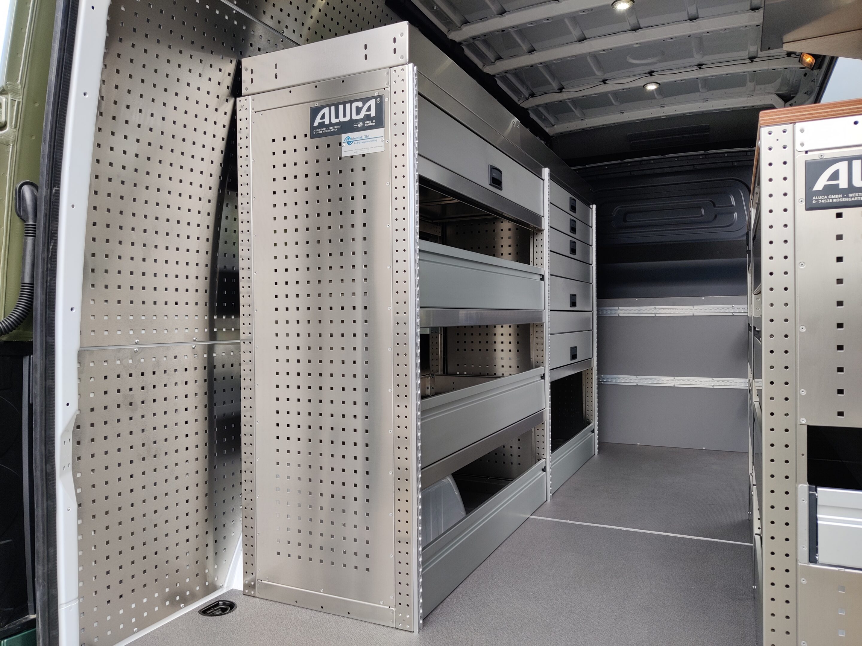 Naast het plaatsen van de specifiek samengestelde Aluca bedrijfswageninrichting voegden wij diverse aanvullende accessoires toe zoals;