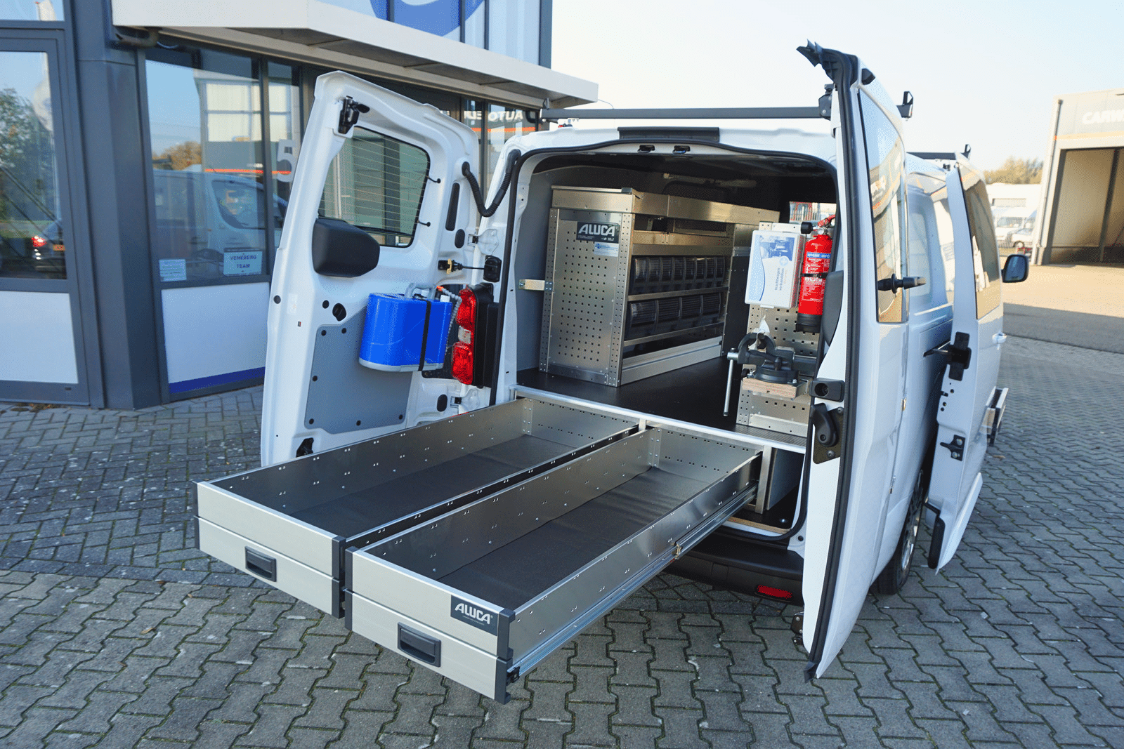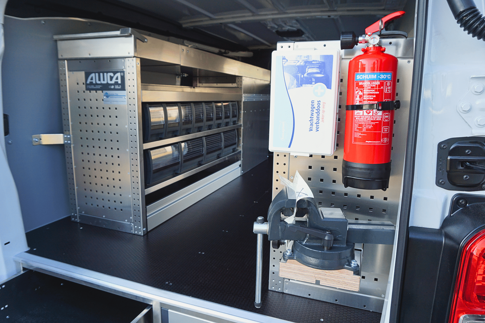 Samen met de monteurs van Triada hebben we een slimme indeling ontworpen waardoor de meeste materialen bereikbaar zijn zonder in de auto te hoeven kruipen. Door gebruik te maken van de lichtgewicht aluminium inrichting van Aluca blijven de actieradius en het rijcomfort van de bedrijfswagens behouden. De op het dak gemonteerde flexibele ladingdragers worden met één handeling omlaag geklapt. Dit bespaart brandstof en vergroot de actieradius. Bovendien minimaliseert het windgeruis.