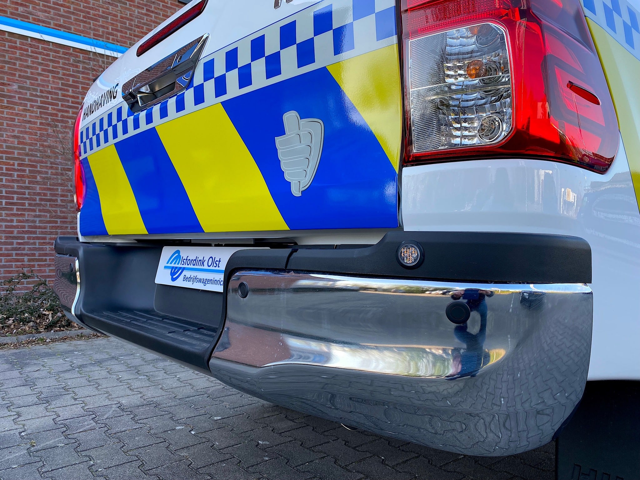Signaleringsverlichting is in veel branches een zeer belangrijk instrument. Deze Toyota Hilux van de Gemeente Deventer* is door ons voorzien van een dakset met matrixbord. Net als van flitsers in de grille en de achterbumper. Speciale aandacht verdient de dakset. Naast de licht- en flitsfunctie is een dubbel matrixbord geรฏntegreerd. Zowel aan de voor- als achterzijde worden de voorgeprogrammeerde teksten getoond. Aan de voorkant in spiegelbeeld speciaal voor zicht in de binnenspiegel. Aan de achterzijde in normaal schrift voor achteropkomend verkeer. De flitsers en de dakset met matrixbord worden vanuit de cabine bediend met een duidelijk en verlicht controlepaneel. Aanvullend is een tweede stroomcircuit ingebouwd. Om ook als de motor is uitgeschakeld met de signaleringsverlichting te kunnen werken.