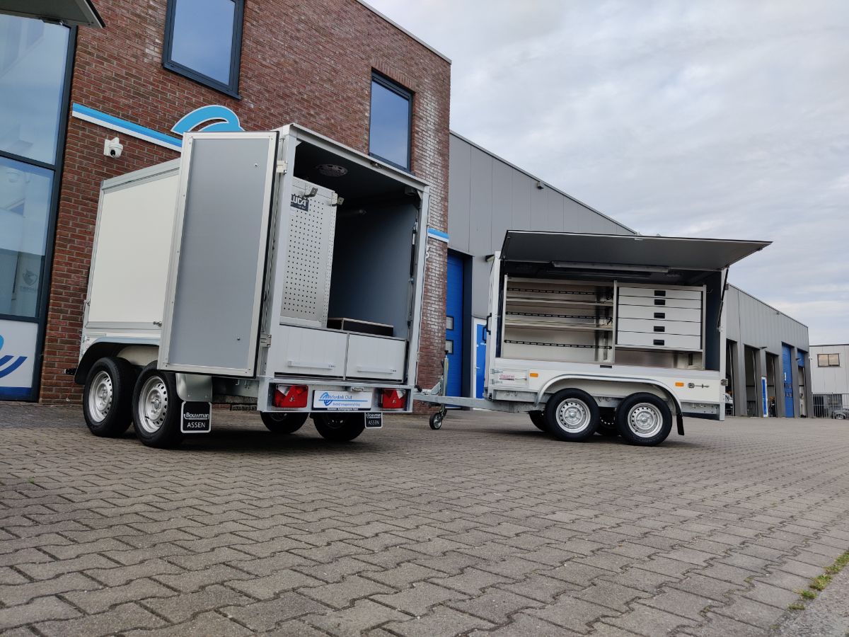 Om werk in zero-emissiezones te kunnen doen, zijn er ook andere oplossingen mogelijk. Bijvoorbeeld de inzet van elektrische personenauto’s vanwege de veel grotere actieradius en de lagere kosten. Klik bij onze projecten op Zero Emission personenauto’s voor mooie voorbeelden. Door personenwagens specifiek in te richten voor het type werk, kan vaak al een groot deel van de servicebehoefte ingevuld worden. Zijn er voor bepaalde klussen veel gereedschappen of grotere materialen nodig? Dan is een compleet ingerichte aanhanger een handige oplossing. Die kan achter een enkele elektrische personenwagen zo mee de zero-emissiezone in.